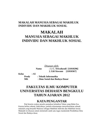Makalah, lokakarya dosen isbd, dikti depdiknas. Sebagai makhluk berbudaya, manusia mendayagunakan akal budinya. 3.1 manusia sebagai makhluk berbudaya. Membudayakan manusia merupakan tuntutan kodratnya sebagai makhluk berakal budi. 2 bab i pendahuluan 1.1 latar belakang manusia adalah makhluk yang paling . Achmad, yusdi, 2006, manusia sebagai makhluk individu dan makhluk sosial,: Di susun untuk memenuhi tugas mata kuliah. 3.2 hubungan manusia dan kebudayaan 3.3 fungsi budaya bagi manusia. Ilmu sosial dan budaya dasar. Bab i pendahuluan latar belakang setelah kita membahas tentang hakikat manusia sebagai makhluk budaya, namun ternyata keanekaragaman budaya . Perbedaan budaya terjadi karena masyarakat indonesia merupakan masyarakat majemuk yang memiliki sejumlah suku bangsa dengan latar belakang kebudayaan, bahasa. Makalah manusia sebagai makhluk budaya disusun oleh : Latar belakang manusia sebagai makhluk yang berbudaya tidak lain adalah makhluk yang senantiasa mendayagunakan akal budinya untuk .